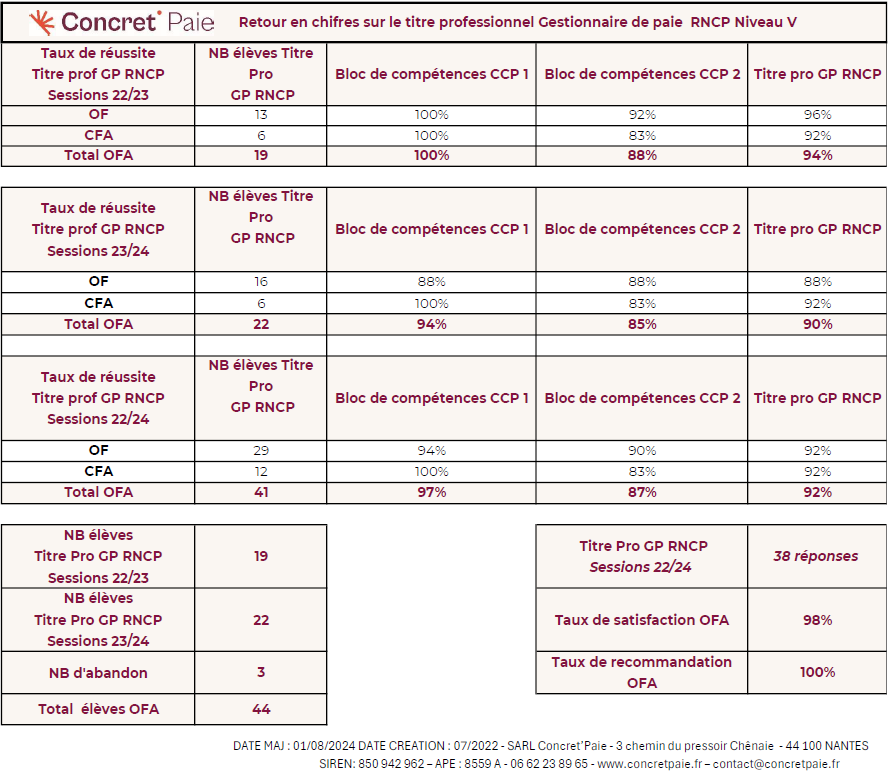 Date du renouvellement de l'agrément chez Concret'Paie ; 11/10/2023