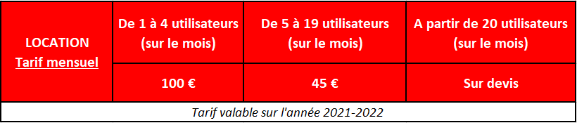 location au mois pour les 100 modules PAR UTILISATEUR
